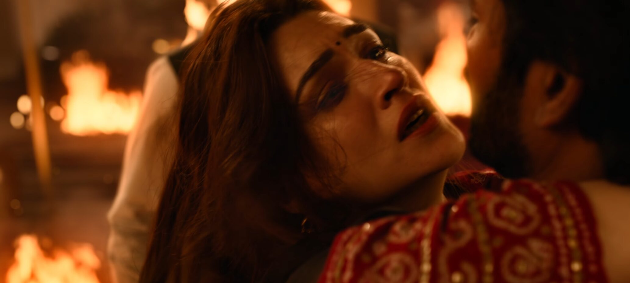 Dhanush, as always, brings unmatched intensity—his eyes carry both fury and endless pain. Kriti Sanon, meanwhile, steps into an avatar we’ve never seen before: vulnerable, broken, drowning in alcohol, yet radiating haunting beauty. Their chemistry? Think Raanjhanaa, but darker, bolder, and way more explosive. And let’s not forget the background—AR Rahman’s music fused with Arijit Singh’s voice. Honestly, it feels less like a soundtrack and more like a soul-to-soul missile that pierces straight through your chest.